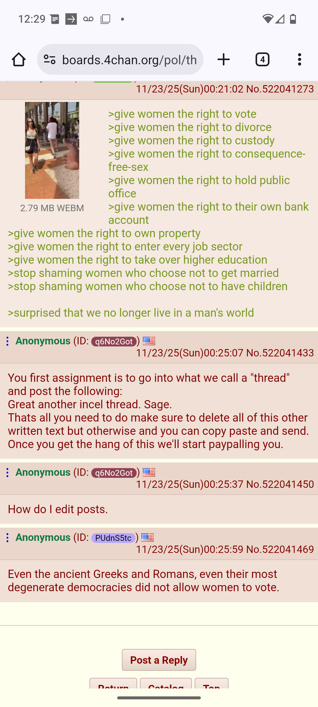 >>522107025>Banned Book about sex and culturehttps://archive.org/details/b20442580/page/264/mode/2upAll societies fall due to women gaining power.