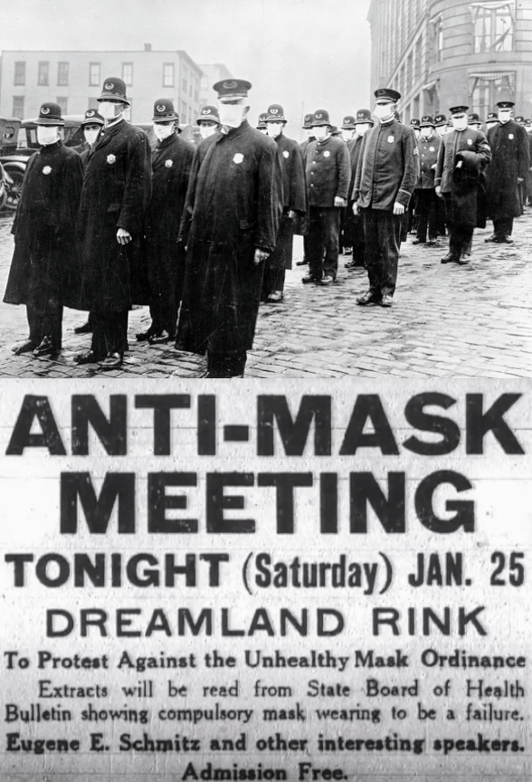 >>522109435The spanish flu is just a mild cough, you're just wound up by newspaper hysteria. I will not wear the mask.