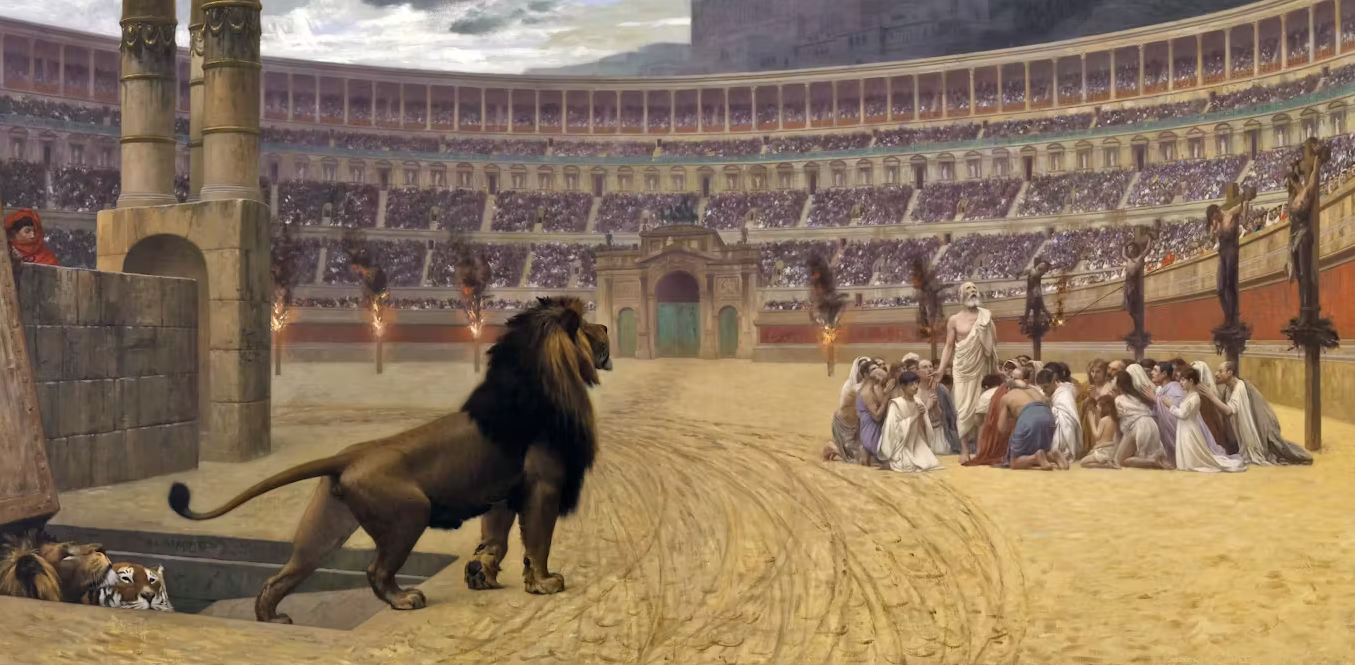 Imagine being huddled back into the back corner of a coliseum, you and your fellow christians desperately trying to escape the hungry pride of lions that has just been released into the arena at the simple thumbs down of the emperor so that you can be devoured alive for the entertainment of pagans. Imagine the deafening roar of thousands of people cheering as your family and friends are eaten alive by fucking LIONS while you desperately ask yeshua to send a lightning bolt, to change the lions minds, to do ANYTHING to save you. Imagine the feeling as the lifeforce leaks from you and you are devoured whole realizing that you dedicated your life to worshipping a jew for nothing