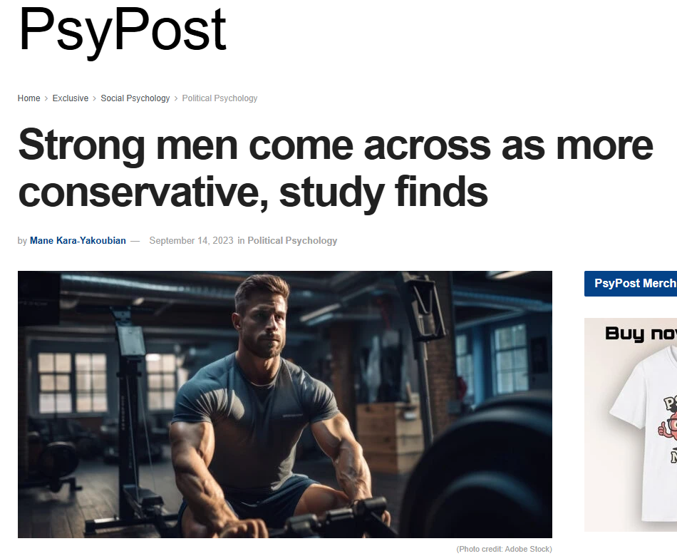>>522112932It's not just them though. Tons of studies by various institutions all show the same thing https://www.psypost.org/strong-men-come-across-as-more-conservative-study-finds/