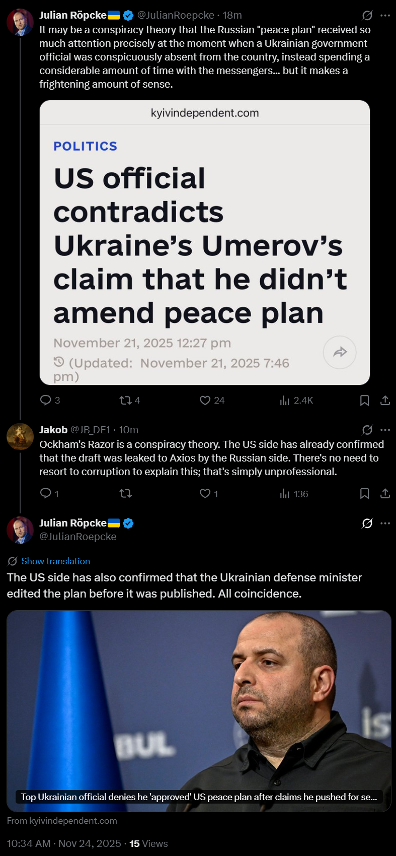 >Moscow has no knowledge of an "American-Russian" peace proposal being reported by western media (MFA Zakharova) - https://archive.today/UqlhZ
