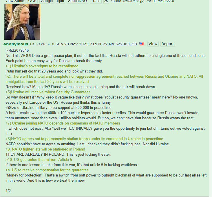Be aware, any /chug/ thread that uses globohomo nuspeak wording in the OP (such as Kyiv) or cites UKROP sources (like video game footage) are fake shill threads.