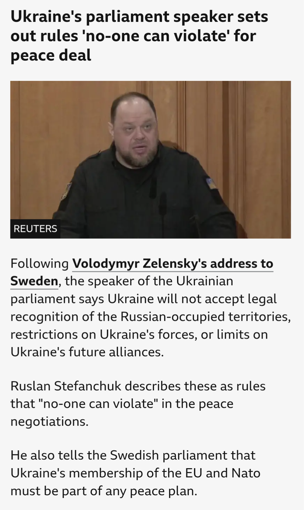 >The Ukrainians seem to be pushing for the "point 21: de facto recognition of Crimea, Donetsk, and Luhansk as Russia" to be amended.