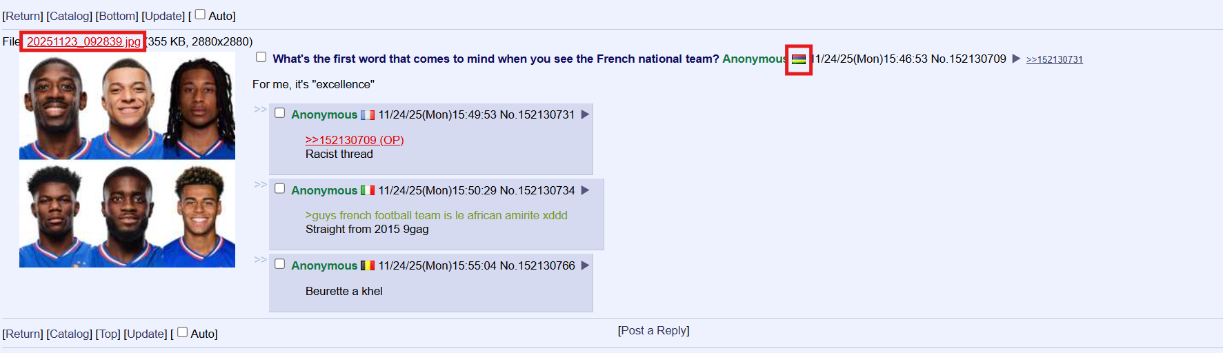 Pic related are some of the top players from the French national football team. Each year, France develops top-level talent that elite clubs compete to sign. Kylian Mbappé, considered the best player in the world, is French with Cameroonian heritage and now plays for Real Madrid, arguably the top club globally. The most recent Ballon d’Or winner, Ousmane Dembélé, is fully French as well and has Malian origins. Not long ago, France won the world Cup with a team full of French players whose families trace back to various African countries. Their success has boosted France’s international influence in sports and brought economic benefits. So doesn’t this demonstrate that diversity is a net positive? How can you be mad about this?