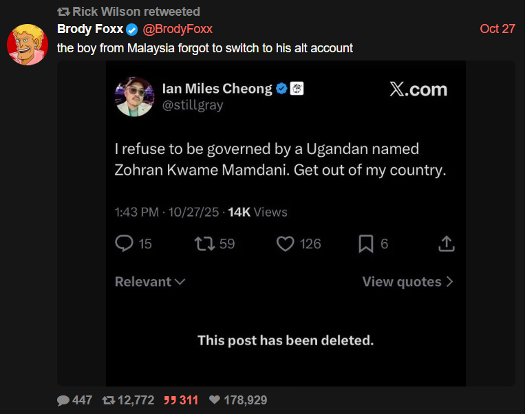 >>522132093porn accounts are not political accounts, you chimp. X fires the ban hammer on these lowlifes every odd day of the week. the real mischief was going on with political psy-ops, pinned onto us when it was really only ever the muzzies at-large.