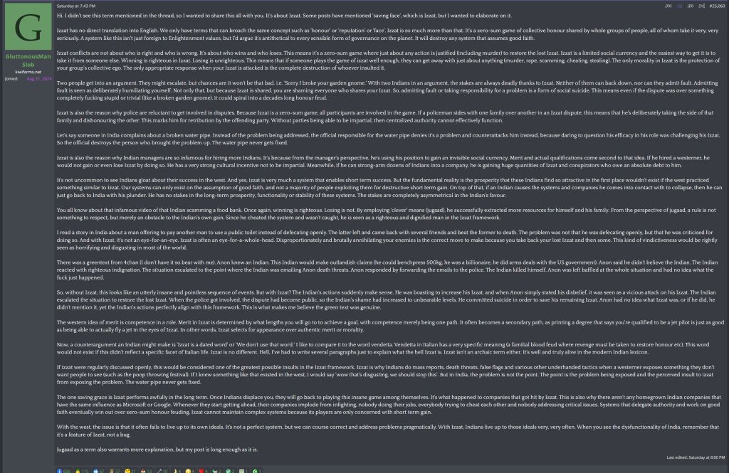 Read about izzat and talk about it on social media, that would make a lot of poos rage and kill themselves. We need a short copypasta.