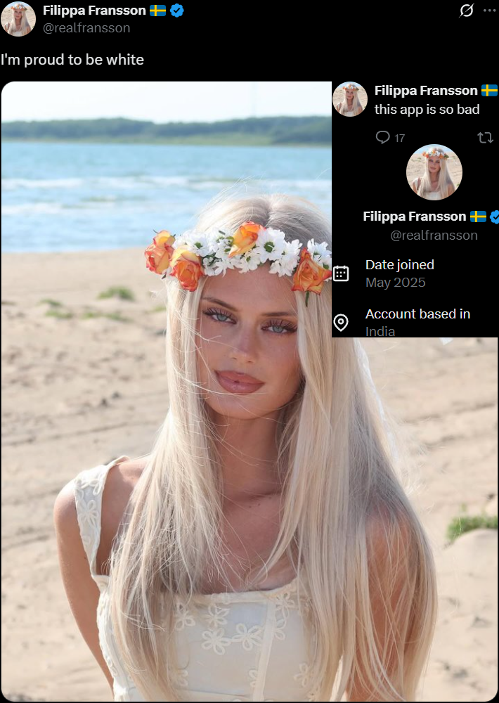 >>522136656It's true, you never heard white chuds complain when an Indonesian LARP as white, if any.And unlike indian one, no one never heard indonesian who white LARPing in xitter to self praising about his country or his race, if any.