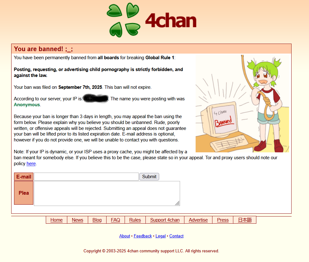 >>522132274Range bans are usually instated when someone posts child porn.