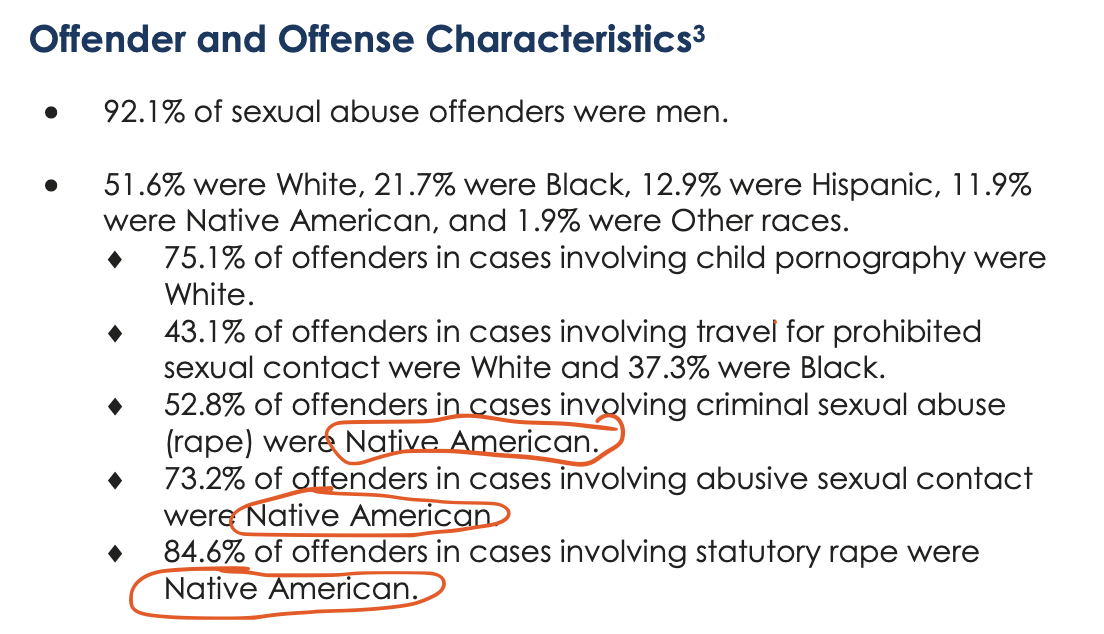 Why do Native Americans commit nearly all the federally prosecuted rape cases in the USA?https://web.archive.org/web/20210623170221/https://www.ussc.gov/sites/default/files/pdf/research-and-publications/quick-facts/Sexual_Abuse_FY18.pdf