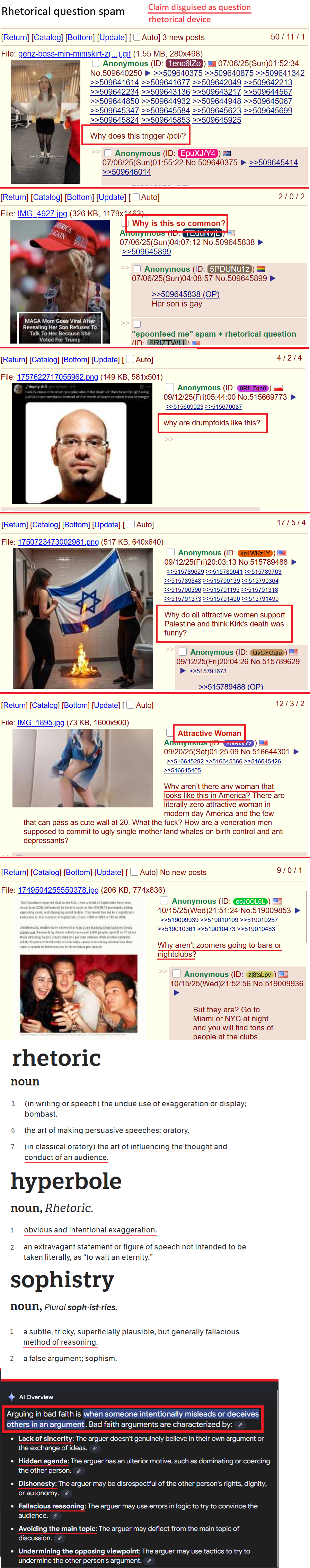 >>522268831>>522268925>>522269117>>522269141Thank you for posting clarity here. The catalog is spammed 24/7 with garbage. This thread is a rhetorical question: "Why does..." claims something as fact. Like the OP surveyed everyone and compiled the data