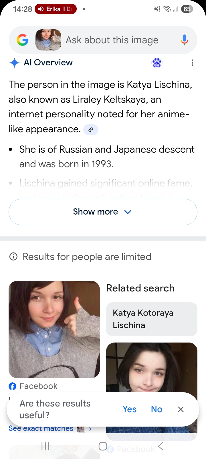 >>522273598I didnt use google search because usually the image search doesnt come up with anything anymore. Otherwise I would have done it myself. 9/10 times it just wants to sell me the clothes the person is wearing while saying that it doesnt allow searching people or some shit.