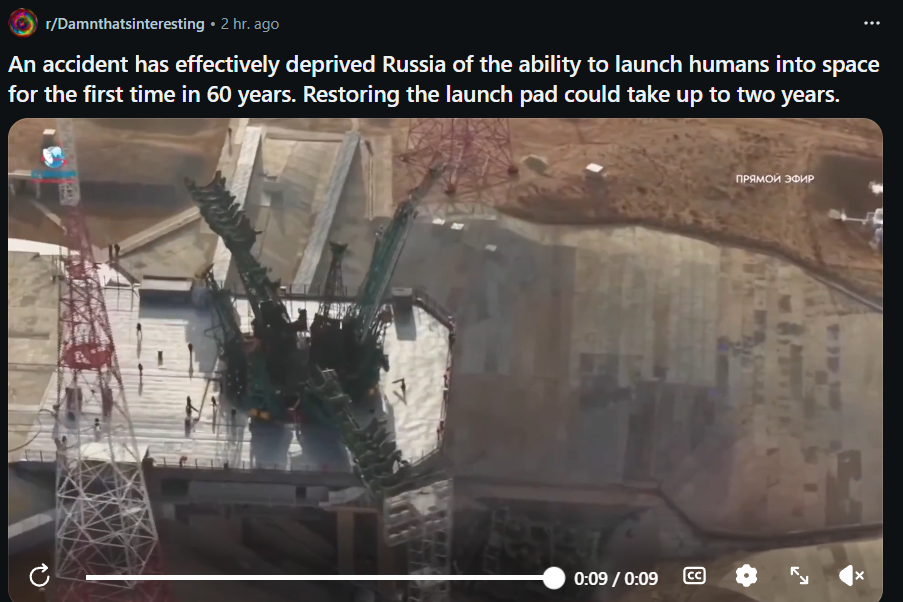 I was pretty sure there was more than one launch pad in Russia, how can be there ONLY one across all the country? Hope the reconstruction doesn't take too long.
