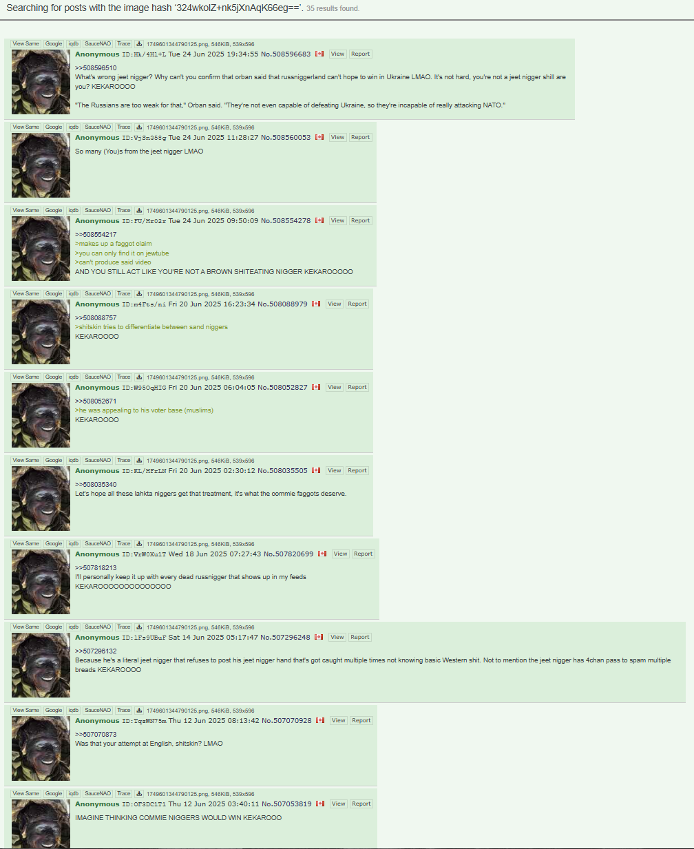 >>522406797The best part is if no one engages with him, he'll still have to spam the wall, because it's part of his nigger script KEKAROOOpro-russnigger = brownp.s: romanigger got caught posting fag nigger porn....again.https://archive.4plebs.org/pol/thread/522316991/#q522332975