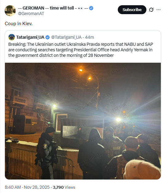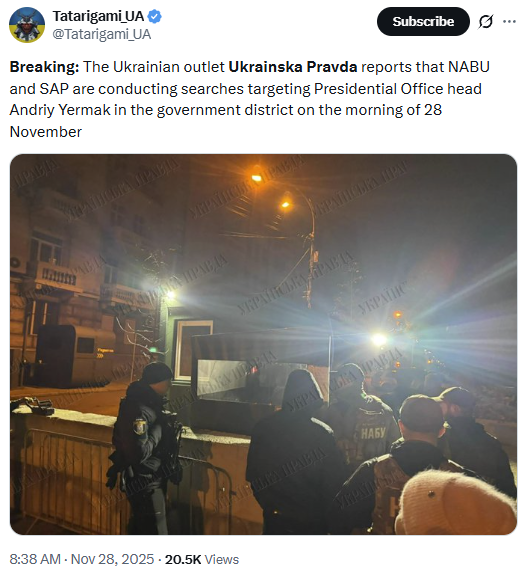 >NABU raid on Yermak's office RN (right now)