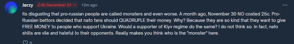 >>522442199they lost their bets because they're generous not retarded. thanks for the extra money ziggers i dont really need it so ill donate all of it to ukraine.