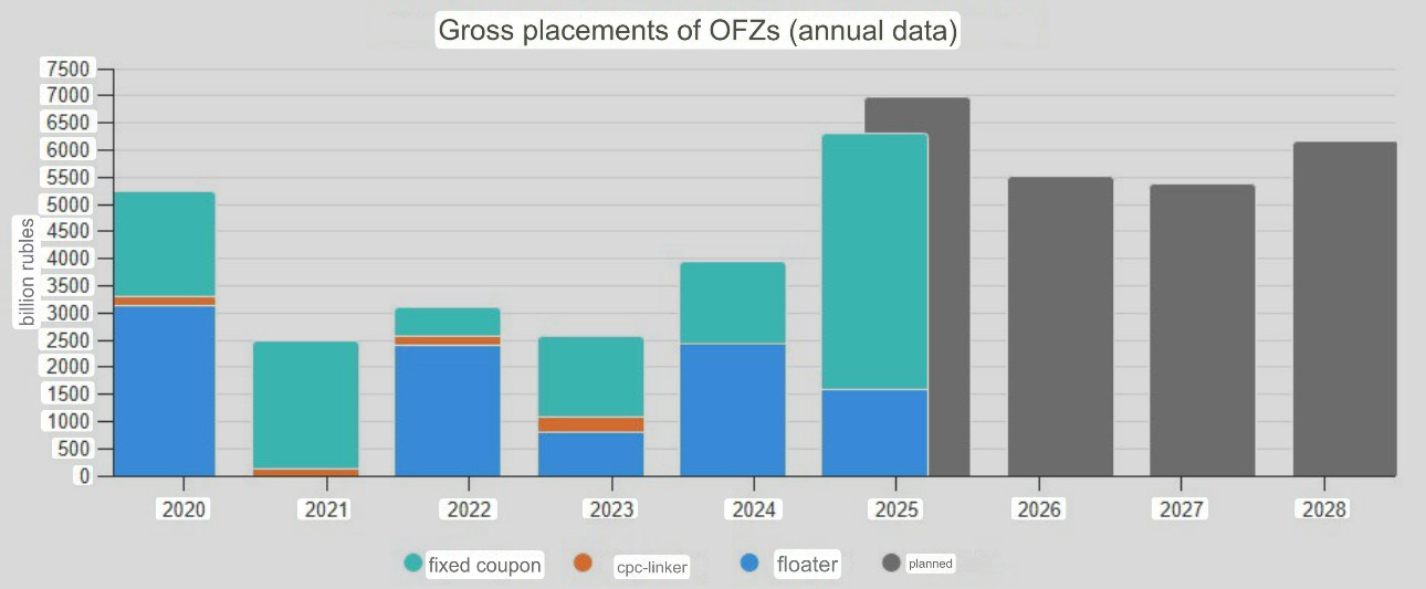 Neat visualisation of the volume and type of bonds issued by the treasury in recent years.