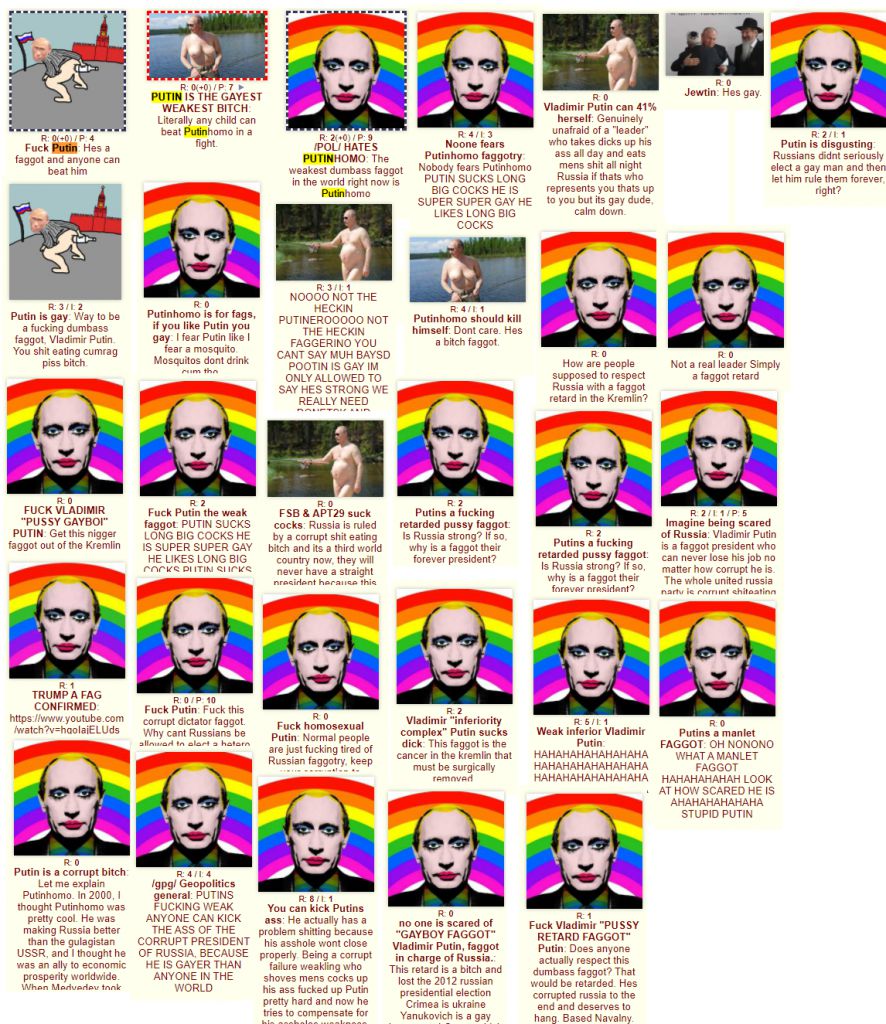 >>522458202>Pretty sure nobody gives a shit about russia.You seem to give a shit about them. You spread their propaganda willingly and suck them off at every chance. Say something bad about russia faggot, prove me wrong