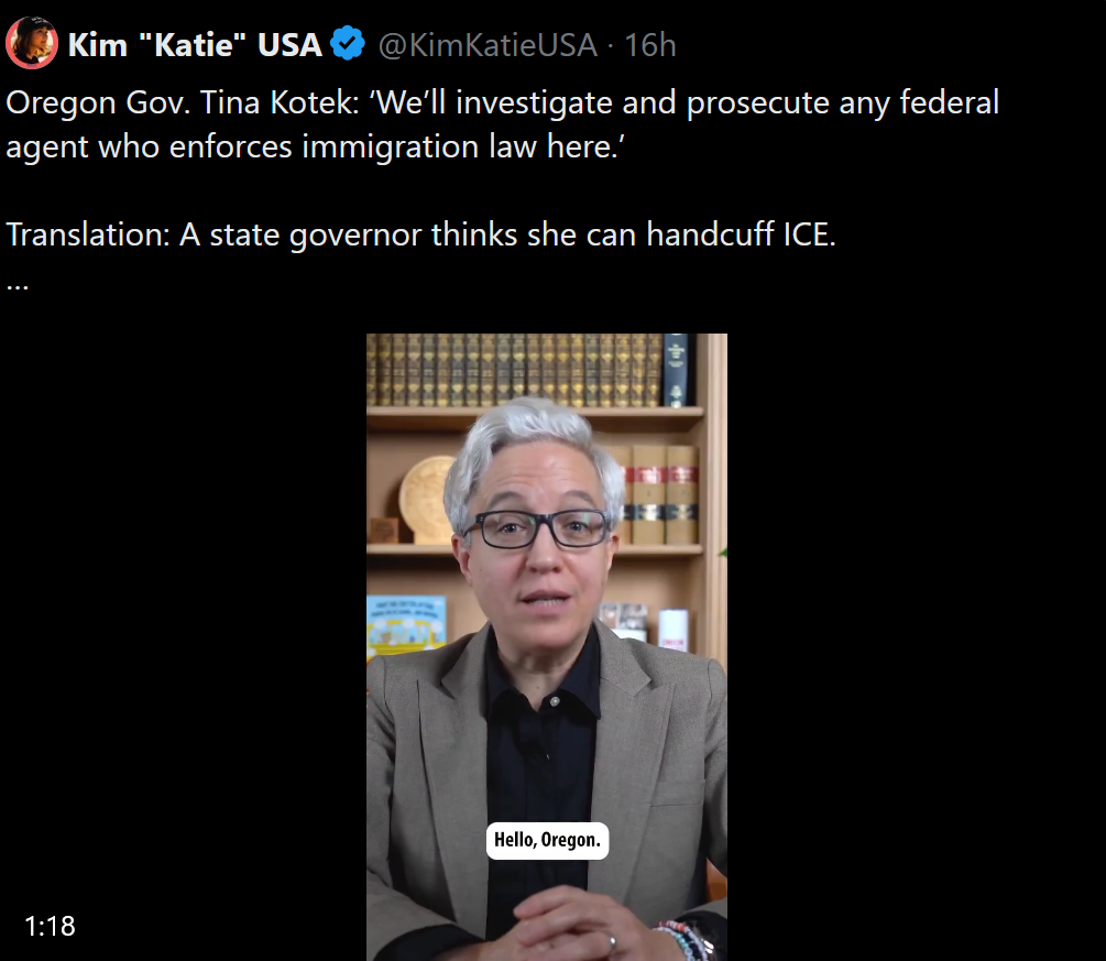 https://x.com/KimKatieUSA/status/1994454769164063103?t=TeG-1-1GLpUbyZjVwEMJiA&s=19Oregon dyke governor calling for the arrest of ICE agents She deserves to be raped and killed by an illegal alien. Thats what she supports