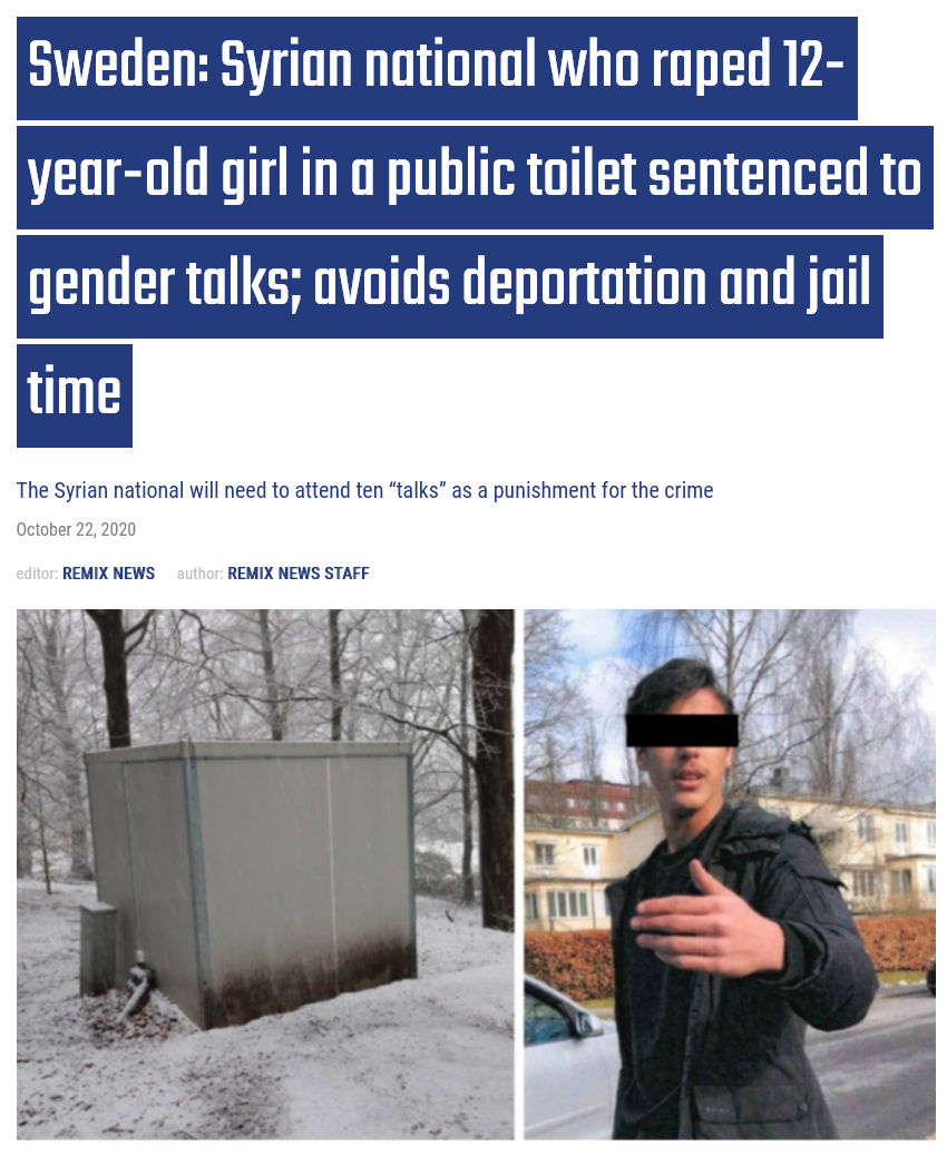 >>522544142I bet the only reason why Sweden is so high in the list right after those brown countries because its full of browns too while jews keep importing more of them and also hold the judicial system that shitskinned rapists don't get deported nor even convicted