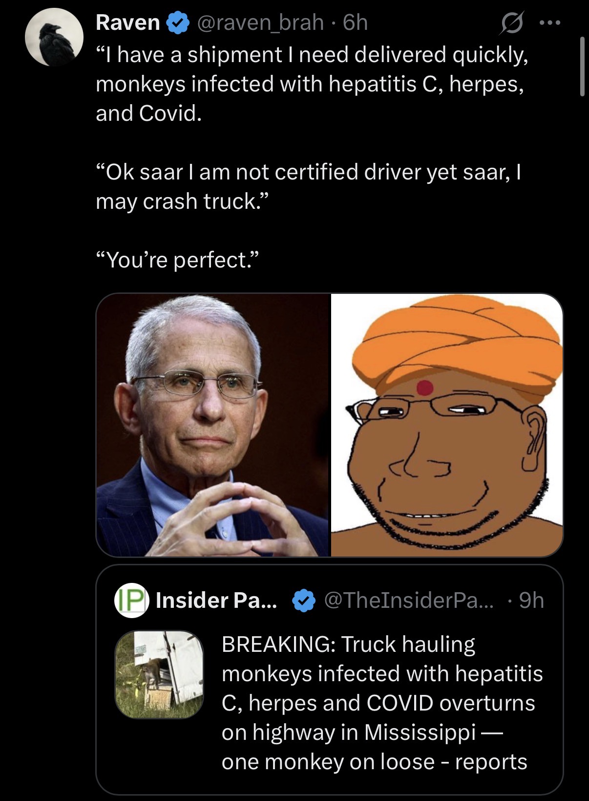 >>522535445Doctor: SAAR! You have stage 4 cancer. You are going to diePatient: The biggest threat to my life are JEETS!Doctor: Saar I am Indian. I can save your life!Patient: F**K you PAJEET! You are the problem. You think you are chosen, you hindu extremist!Doctor: Are you insane? We need to start you on 40cc of cowpoop right away.Patient: You are a f**king PAJEET. I hate you. You are the biggest threat to my health[The West cannot auto-correct from its death spiral when its mortal enemy is X but many people in the West think that the "real enemy" are indians. Many of us keep screaming from the top of the mountain but you ignore us]
