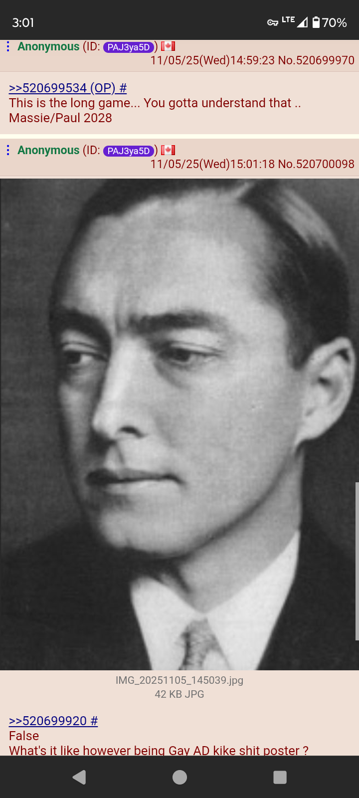 >>522552759>Why?Jews.Had all the jews been killed, the White-only laws would have never been destroyed, and not a single jeet would have been ever allowed to step on White soil.