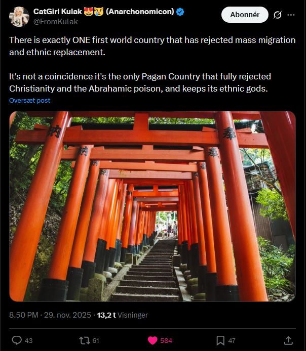 >>522535993"Japanese Paganism" be like>be good>do good>be charitable>respect life>be honorable>dont steal >dont lie>be clean>visit a shrine once a month to pay respects to ancestors who bless you with good luck and goodnessmeanwhile larpaganism>do whatever you want>be a faggot>rape animals>morality is a hoax>murder is fine>cheat>lie>steal>do fagtanic rituals just to be a bigger faggot than everyone around youmy only practical issue with japs is that they have no spiritual guides around chastity and marital loyalty