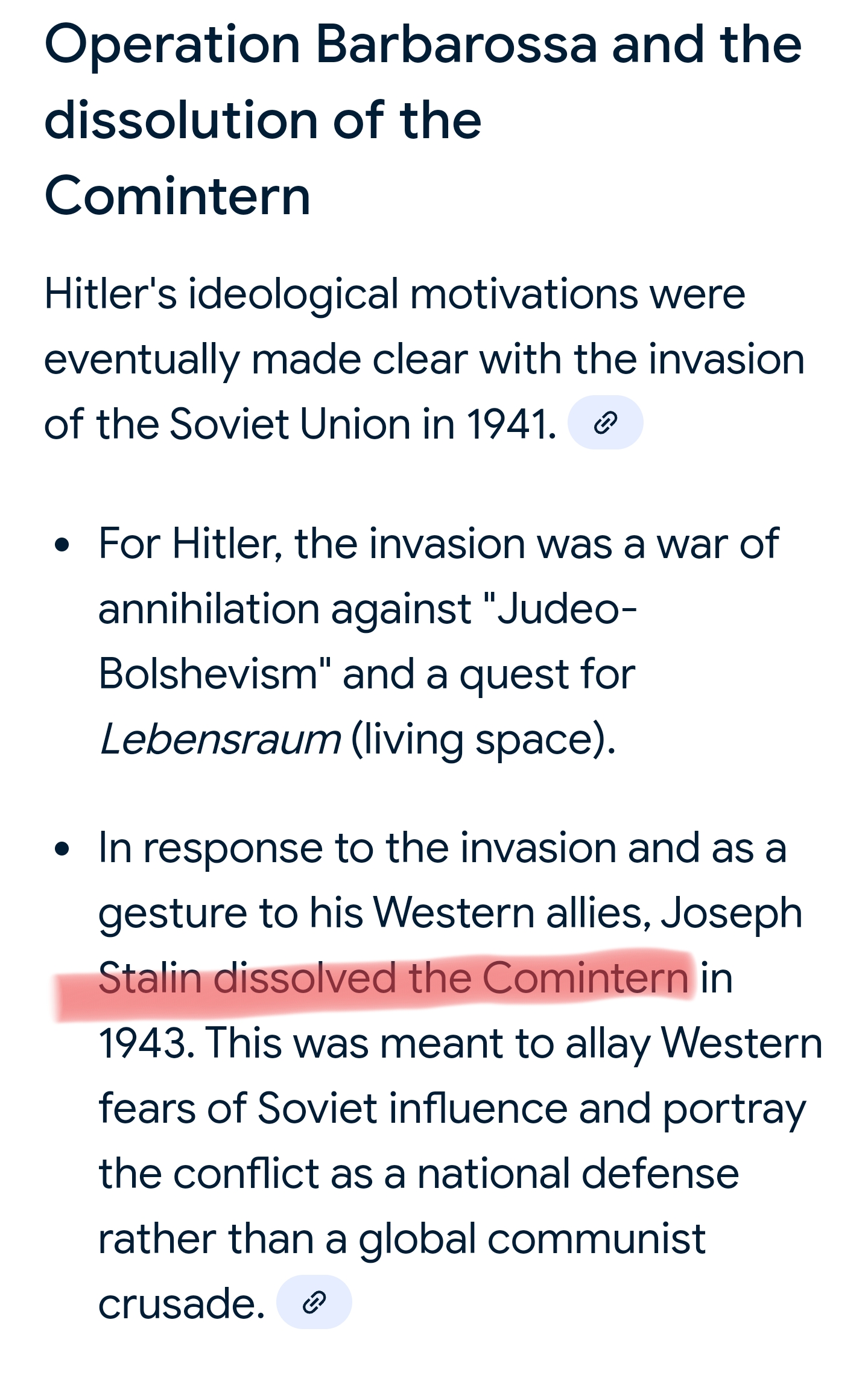 >>522540276Please at least go read the wiki on the Comintern before replying to me again. The Spanish civil war was a result of the Comintern. Hitler wanted to destroy it which was the primary motivation for operation Barbarossa