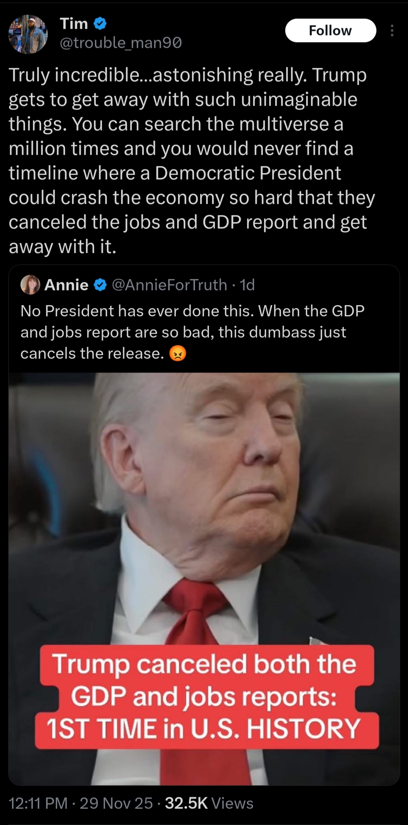 Why do you think Trump is allowed to crash the economy and hide those details from the American public, but Democrats can't?