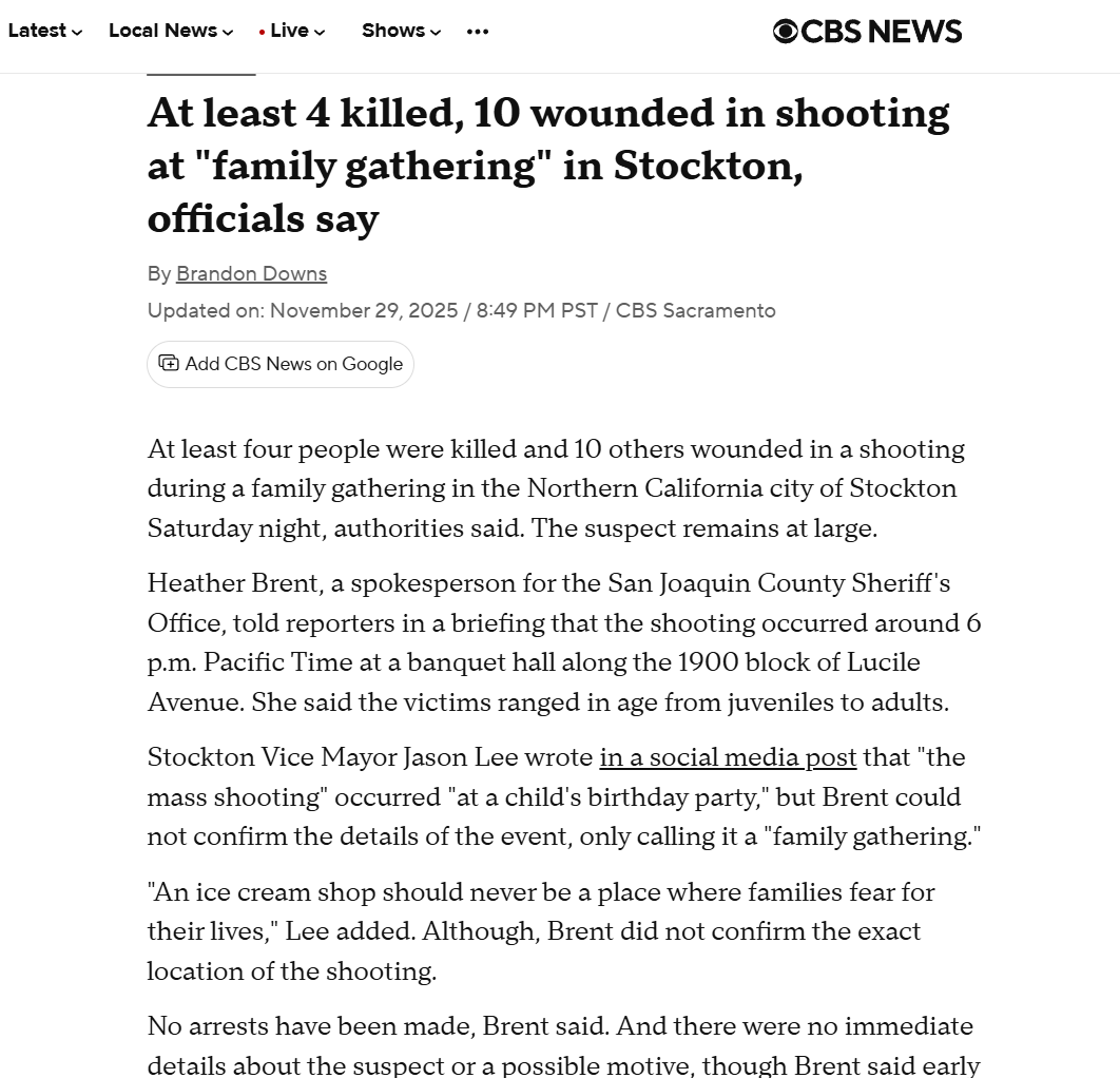 STOCKTON CAhttps://www.youtube.com/live/lZR3l7sBSB0?si=mbQ1eN_ApTOhuMYaLIVE NEWS FEEDhttps://www.cbsnews.com/sacramento/