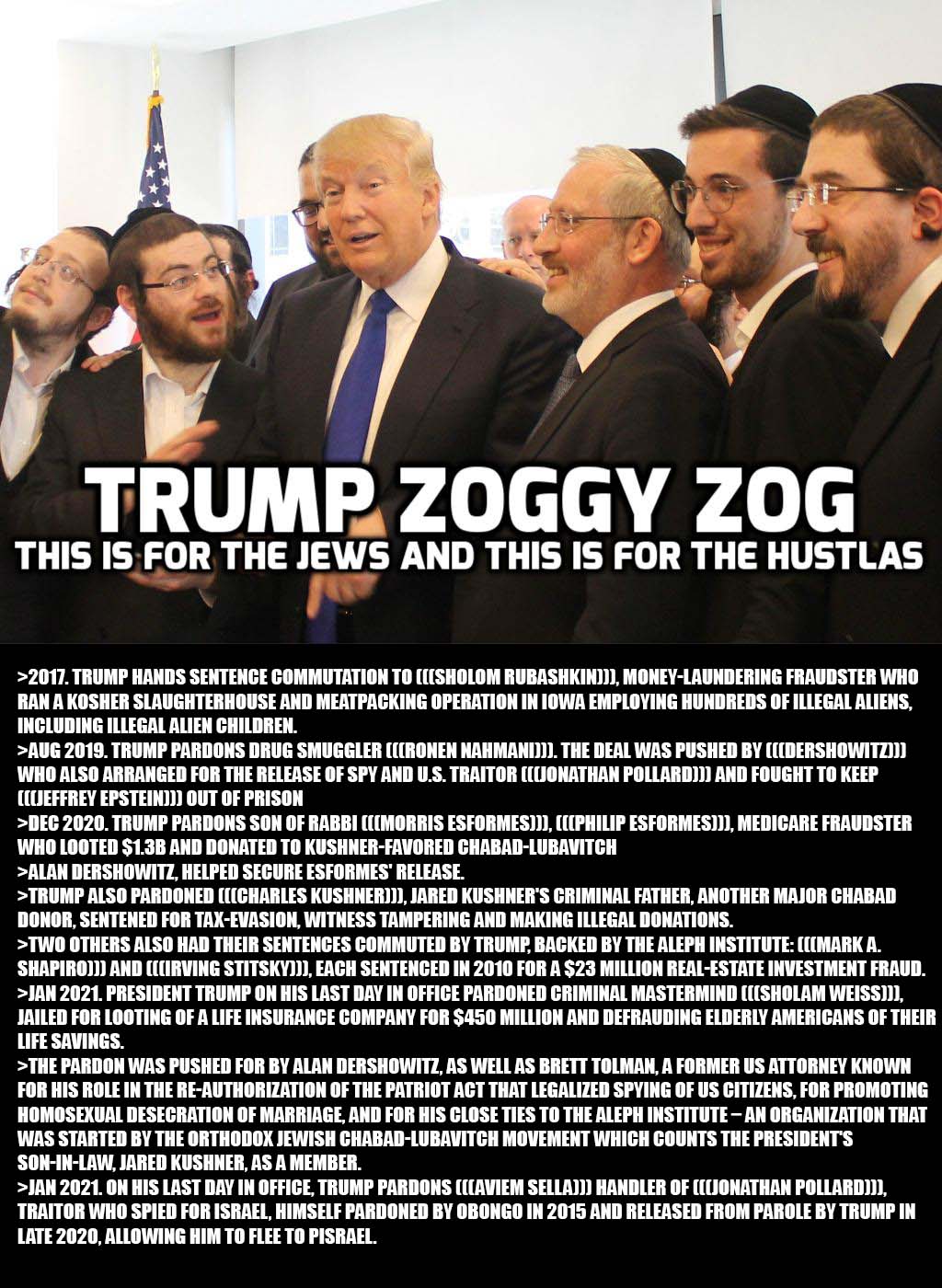 >>522556822>Trump only gave them 2b in aid over ten years>While they were still recieving the 38b obama gave them>trump didn't stop that.>And then they got 26b from 2024 onward>Did trump stop that?>how much is he giving them in this term?>Why did they need 2b on top of the already massive sums they were getting from previous presidents?>What other cash aside from aid were they getting?>OY VEY STOP NOTICING, GOYIM!!!!!!>TRUMP HATES THE KIKES HE ONLY WENT TO KISS THE WALL WITH THE FAGGY LITTLE HAT ON TWICE>HE ONLY TRIED TO MAKE ANTISEMITISM ILLEGAL>HE ONLY PARDONS ANY KIKE CRIMINAL WHO COMES INTO THE COUNTRY!