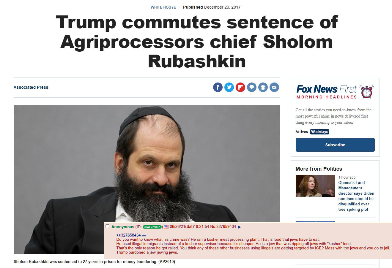 >>522556822>conveniently leaving all the money Trump has given Israel Jewish hands posted this. Trump’s obviously in bed with the kikes, look at his appointment to head of the EPA who’s actively poisoning you via PFAs pesticides.