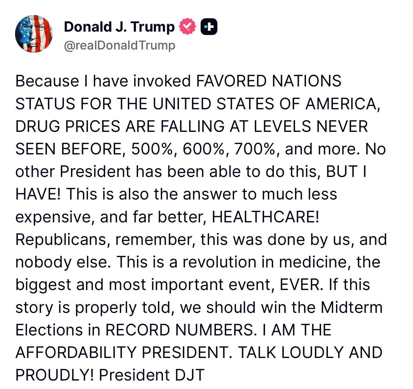 Trump is speaking to profit margin/markup reductions.If a drug is marked up 1200% for americans, but only marked up 500% for europeans, then the favored nations clause drops the markup for americans by 700% for that drug.Rather than implying a literal business mogul billionaire doesn't understand pricing, markups, and profit margins, isn't it easier to just try and understand the context of his assertions.