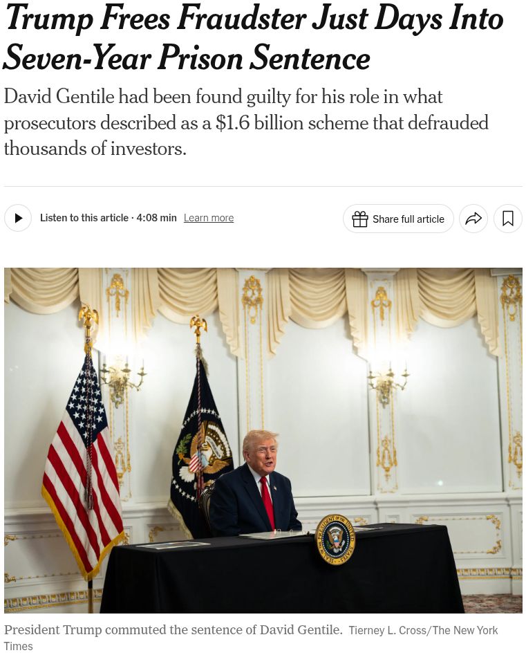 >>522564533Trump is absolutely 100% selling pardons. There is no question. >all the other slimey presidents wait until they're about to leave office before they pardon scumbags for bribesThere is no way Trump is freeing scammers from prison for any other reason than favors/kickbacks/etc. There isn't even any sort of "this is justice" narrative. He is simply pardoning bad people for no reason that benefits the American people. Clearly he is selling pardons.