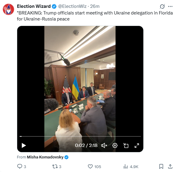 Meanwhile in Florida...Two more weeks?>Top Trump administration officials are meeting Ukrainian negotiators in Florida this weekend, pushing to broker an end to Russia's war in Ukraine and setting the stage for key talks planned this week in Moscow with Russian leader Vladimir Putin.>Secretary of State Marco Rubio, Special Envoy Steve Witkoff and Jared Kushner, the son-in-law of U.S. President Donald Trump, were expected to sit down with a Ukrainian delegation to further hash out the details of a proposed peace framework.Turtle fren rescued!>A 170-pound loggerhead turtle nicknamed “Molly” was back home in the warm waters of the Florida Keys after a successful surgery to remove a life-threatening tumor inches from her head and months of recovery.
