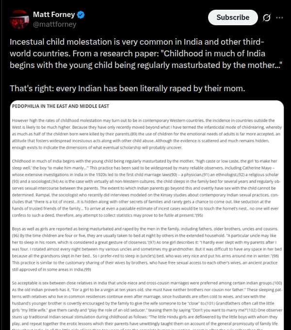 Basically all indians have been raped by their parents.