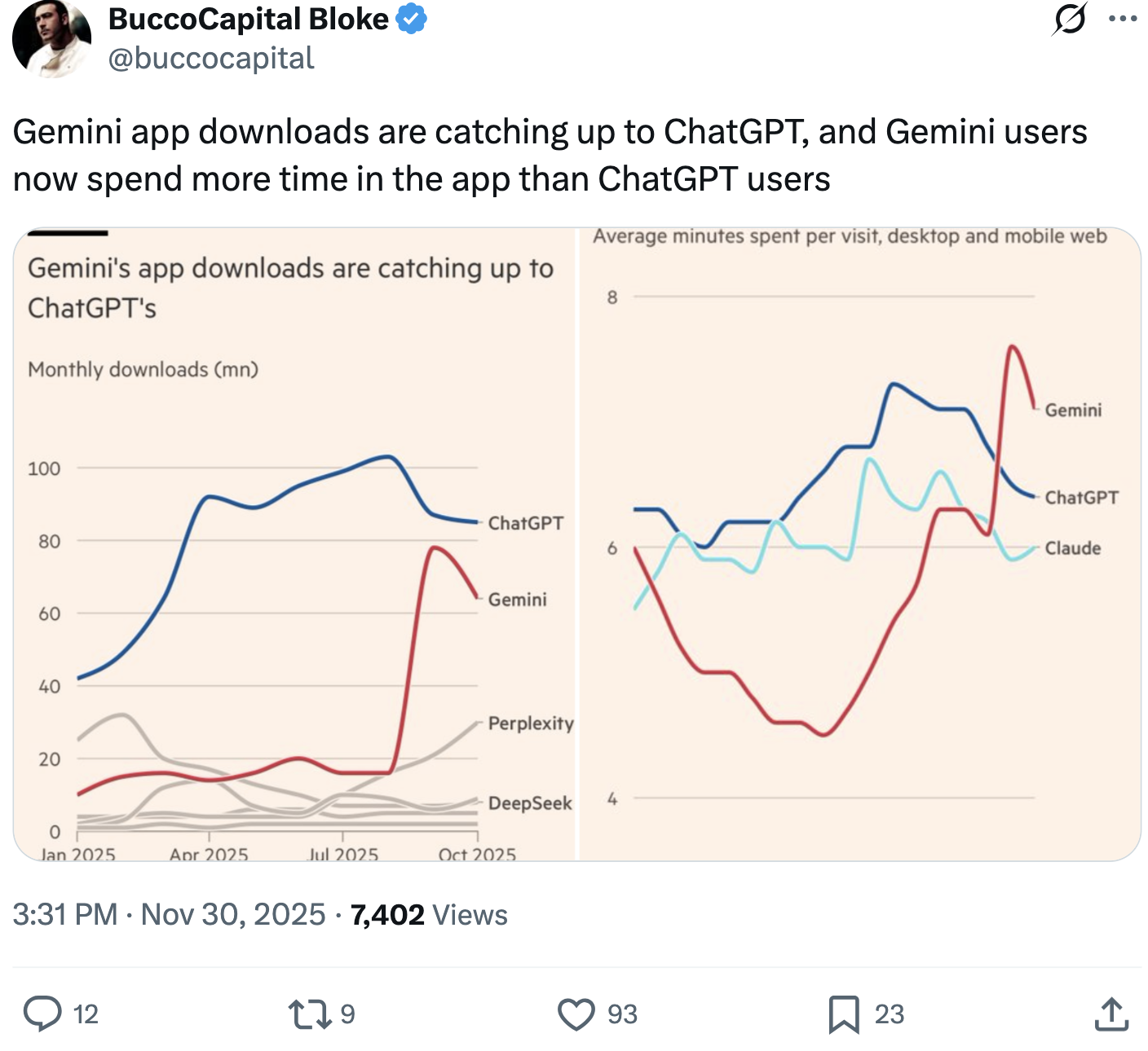 >>522569969>Gemini is now more popular than ChatGPTYes, however DeepSeek has surpassed Geminy and poetiq ai has broken all records.Feel the AGIhttps://x.com/poetiq_ai/status/1991568184902816121https://x.com/hsnboud/status/1995171927543918657