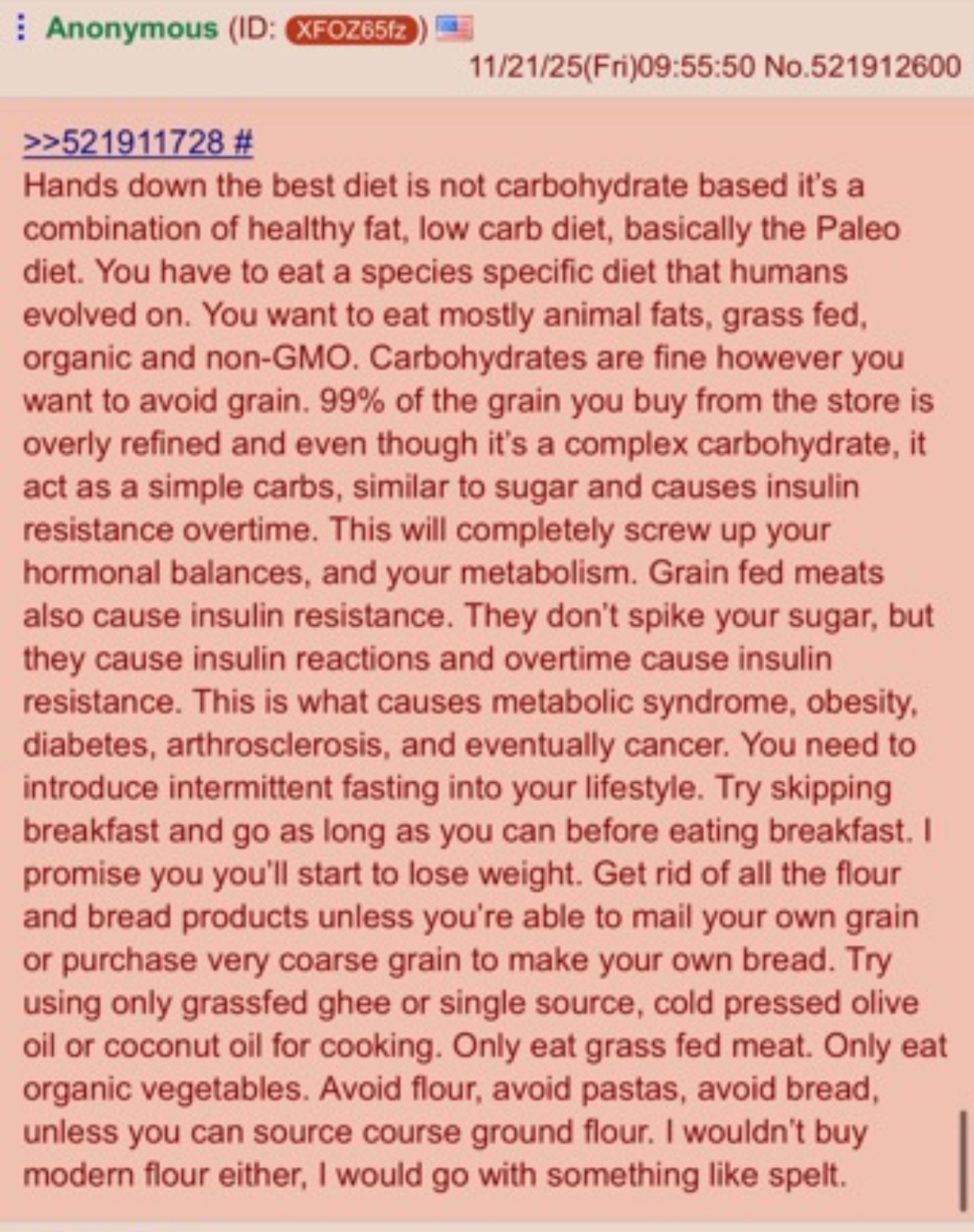 >>522570632I won't stop eating bread, pasta, or sweets. My grandparents lived to almost 100 years old eating that every single day. One of my grandpas smoked every day, and none of them were fat, had diabetus or any other diseases. The only difference is that they almost never ate processed food, aka junk food.