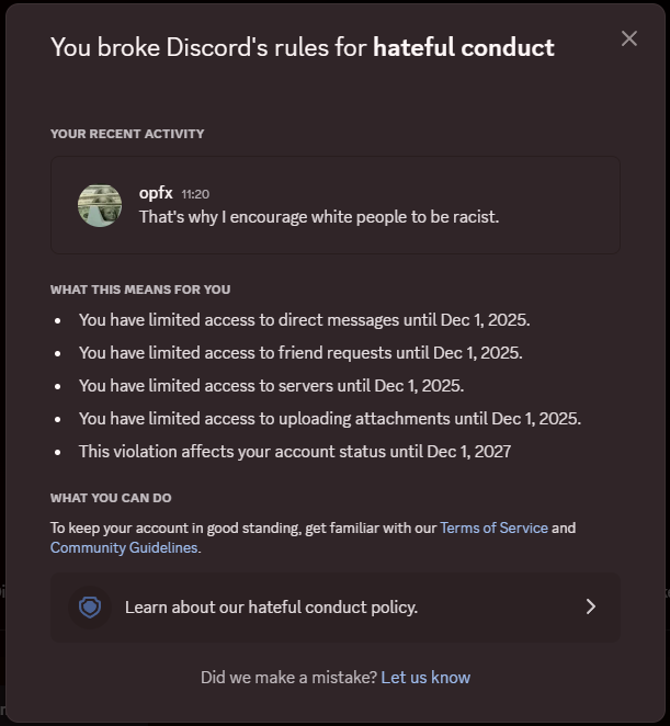 This just in, advocating for self-defense for white women is hateful content.
