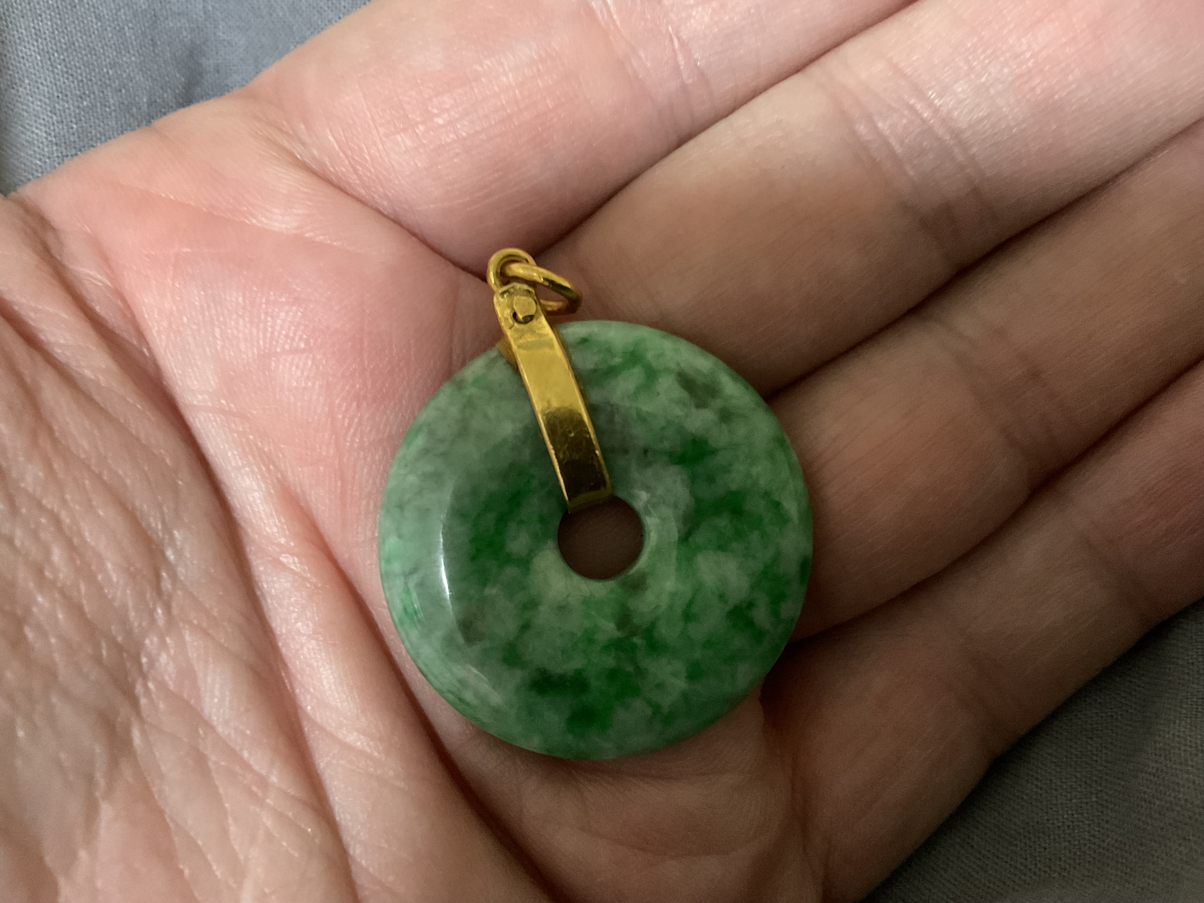 >>522581261I wear pic related but i dont wear the pendant very often. 37.5g 24k chain and 12.5g pendant. Bought the chain and got the pendant free. I think it’s vintage pre treatment jadeite from the 1970s. Whats funny is a while ago a Chinese guy walked up to me and said “my chain was stolen from my house”And i was like “man I shouldn’t buy second hand jewelry from my own city, i should only buy online”, and then he said “but yours is very nice” Scared me desu.