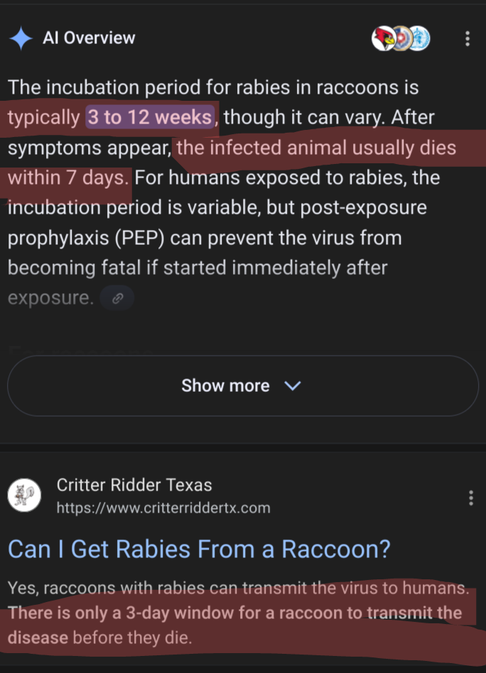 >>522593049You have reading comprehension problems. I said it's possible raccoons could not show signs of rabies for up to 12 months. Which means they could incubate it for that long before getting sick. So its BS to say he would have known and only an idiot would say definitively raccoons on their porch don't have rabies. You have no fucking clue if that's true or not.No rabies isn't a retarded excuse. Dipshit Longo let the public interact with Peanut (and I can assume Fred too) and that is a public health problem because he's not licensed and doesn't have any experience with RVS. Fuck off with your analogies and whataboutism. Stay on topic or stfu with that nonsense.