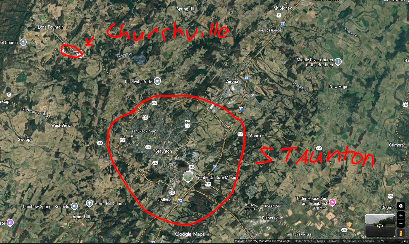>>522591261Churchville is literally five miles away from Staunton