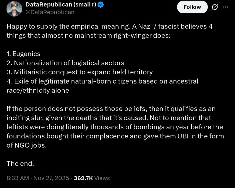 >>522591946I dont think Trump is ideological. Just first principles like America First and all realpolitik. If he were to fit into 20th century ideology he'd be a 3rd positionist. I think ideology is trash and should be left in the trashcan of the 20th century and that realpolitik is the way in this 21st century age of great power competition. If there was any ism I had to pick, itd be caudilloism. Trump is a counter revolutionary