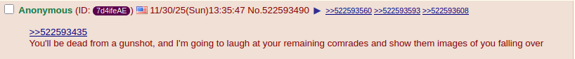 >>522594676>too chickenshit to post another death threatSo much for the right side of history lmao