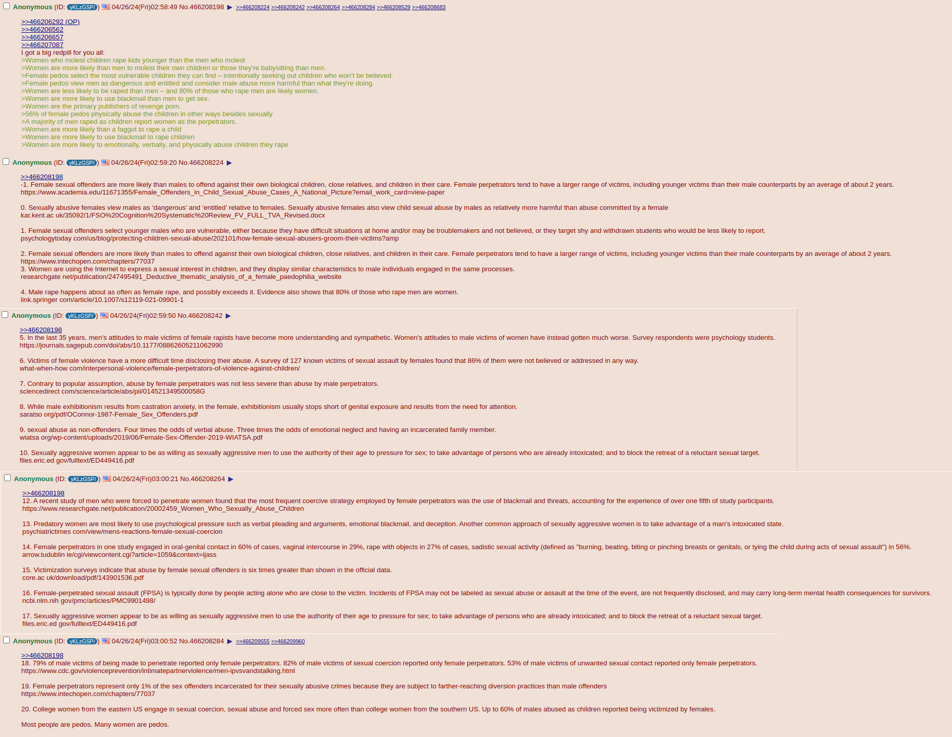 >>522610096also these can probably overlap. some pedophiles are probably just looking to have a power-imbalance with a small, weak, innocent human being, and children are the obvious target.I have a feeling that part of this is just womens "GIVE ME ATTENTION" circuit shorts out and they equate getting sexual attention from young boys as equivalent to grown men giving them sexual attention, and because the woman is literally their teacher, they get carte blanch to an entire class of young boys, whose only female attention is from other young girls who the teacher is "competing" with for the boys attention.Wild.
