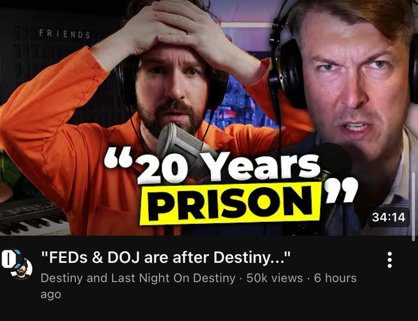 >>522600398>>522600388>>522600293I didn't know who destiny is or what he's supposedly done but this sounds like bullshit