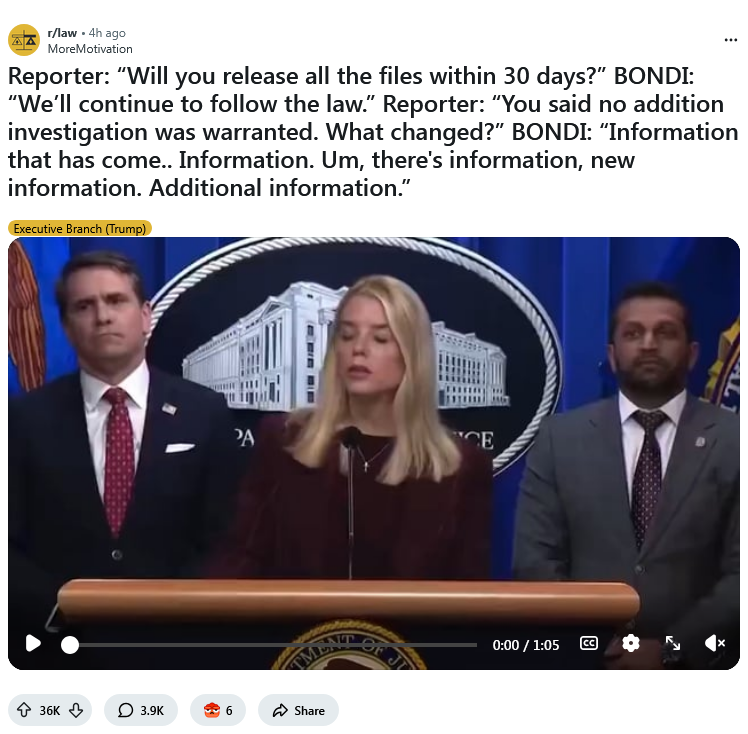 >>522606284>why are you defending a guy who's been with epstein numerous timesIn the 1990s long before Epstein was found to be involved with sex trafficking. Then he tipped off the cops when he found out Epstein was doing that shit. Then he offered to tell the lawyer for Epstein's victims whatever they wanted to prosecute him. Then he arrested him. But lol, none of that matters, amirite?>doing everything in his power to stop the release of the epstein files?Yeah, he's leaving the release of the Epstein files unsigned, isn't he? He's gonna veto it, isn't he? He's gonna use the courts to stop it, isn't he? He's...oh.https://www.bbc.com/news/articles/cly2y40lj5go