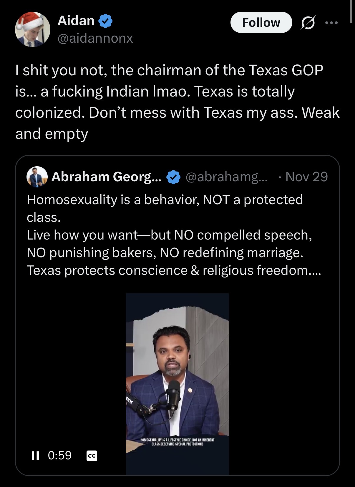 I shit you not, the chairman of the Texas GOP is… a fucking Indian lmao. Texas is totally colonized. Don’t mess with Texas my ass. Weak and emptyhttps://x.com/aidannonx/status/1995198586464948681