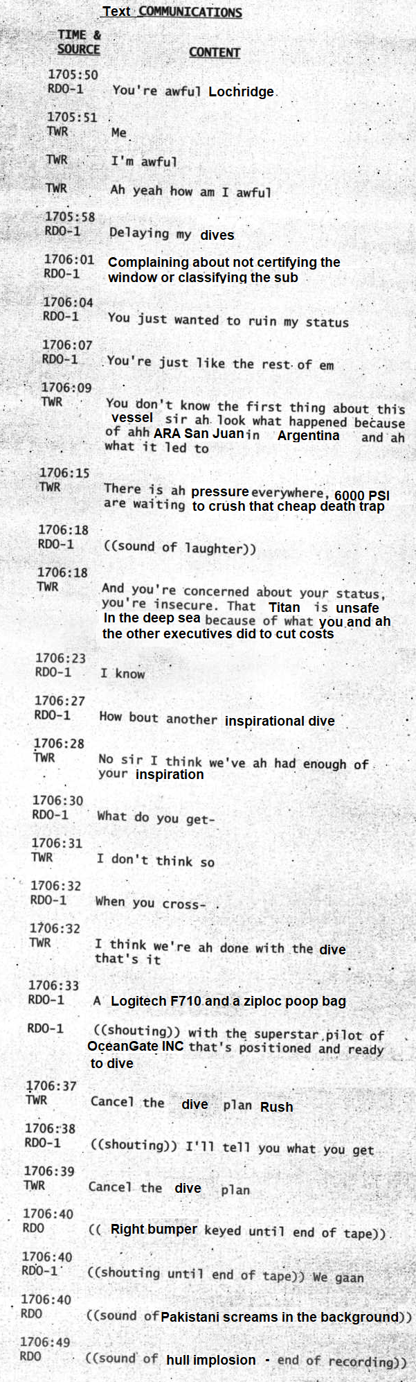 >>522615325>there was nothing smart about the whole operationThe joystick was, but that's about it>I wonder why the suicidal freak took the others with himBecause he thought it was totally safe and he was a geniusIt's kind of funny that they didn't do destructive testing to find out the hull's limits but instead went with this ludicrously inadequate warning sensor system, namely "hey the hull's starting to come apart, hopefully you're not an hour away from a survivable depth" But the system actually worked perfectly, capturing exactly the sort of "oh shit" BANG delamination sound they were looking for a couple dives before the final one, and then recording that hull stress/flex per dive had started to behave differently after that. Literally precisely the evidence of delamination they were looking for, which would tell you to scrap that hull and start making a new oneAnd they just ignored it and kept diving. Their whole safety system was this Mickey Mouse sensor bullshit that had a 1% chance of providing a useful warning in time to prevent everyone dying horribly, and it worked, but they just ignored it and kept going until everyone died horribly lol