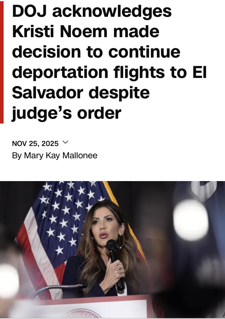>Ree Constitutional Crisis. You must obey judge Jewbergs ruling! https://www.cnn.com/2025/11/26/politics/kristi-noem-deportation-flights-el-salvador-boasberg