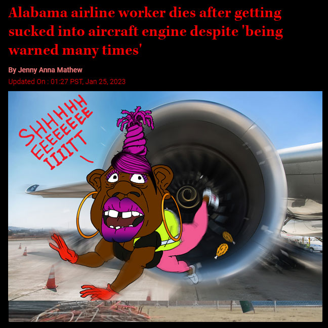 >>522632199Her nigger family is suing the airline too. Get this... the nigger's family said the nigger should have been fired due to previous safety violations.There really is no winning with these monkey nigger subhumans.